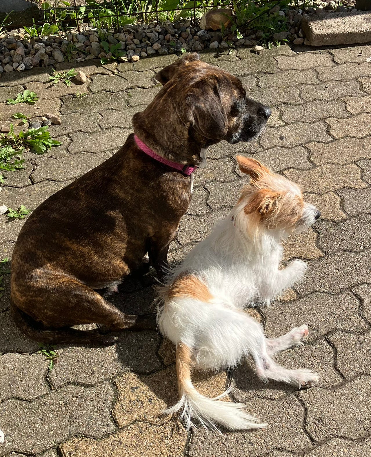 Moren er 1/2 fransk bulldog og 1/2 basset/ Beagle og vejer ca. 15 kg
