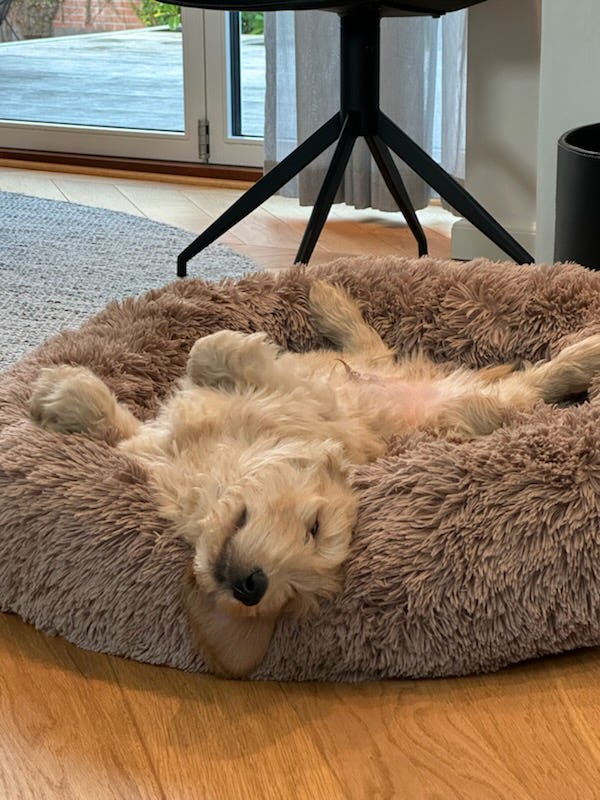 Vi er en lille familie der ejer en skøn kongepuddel med stambog mor er ren Golden retriver. lille type 25 kg faren ligeså kombinationen er lavet før og det er sidste kuld