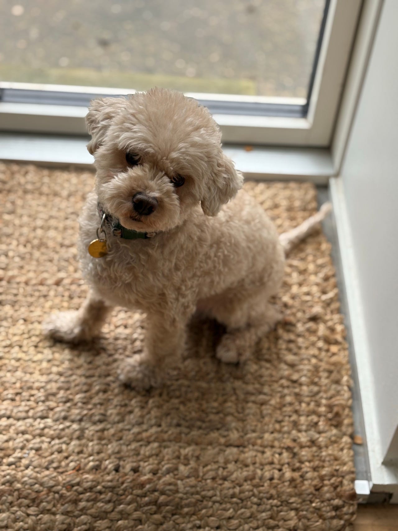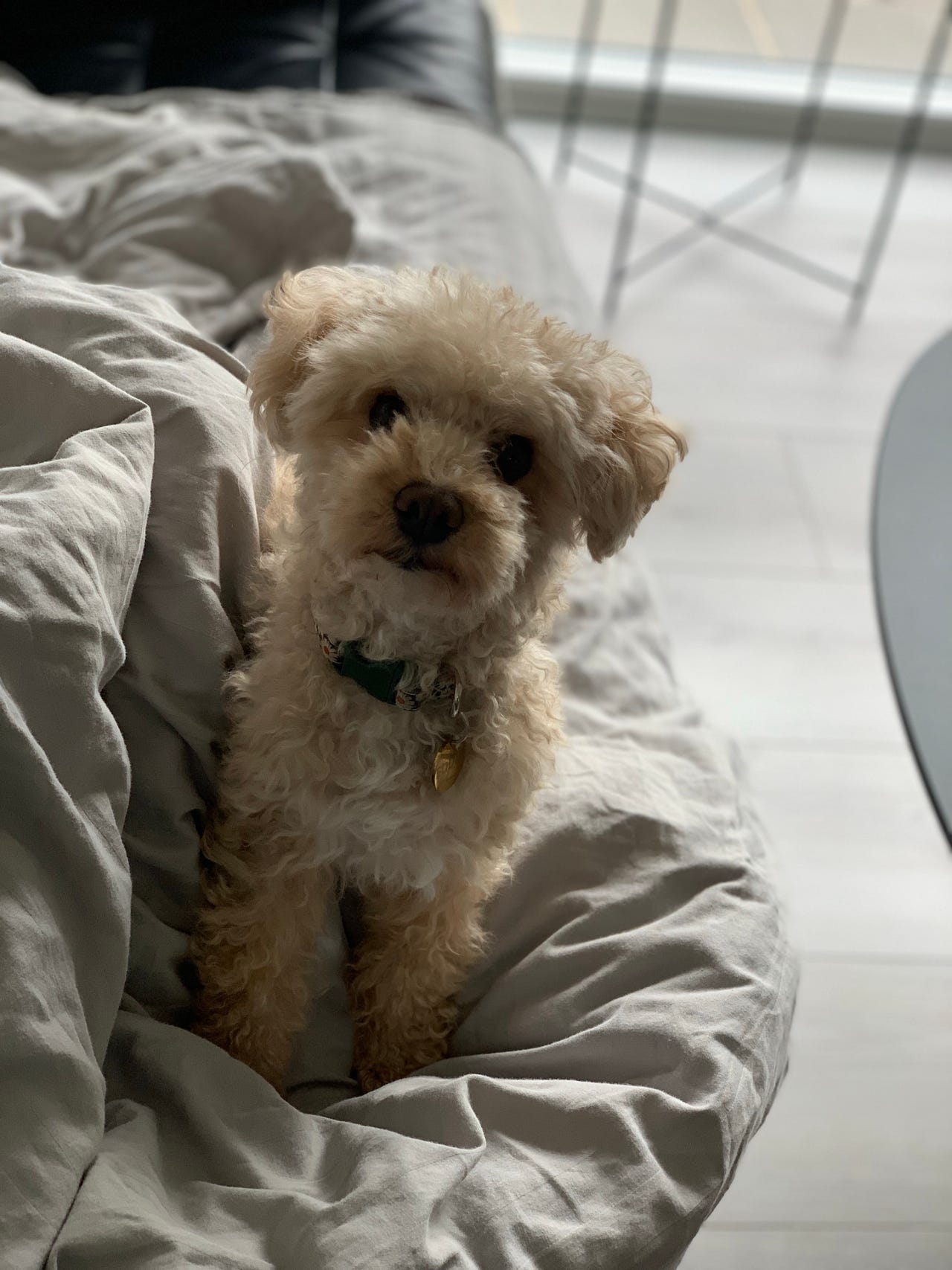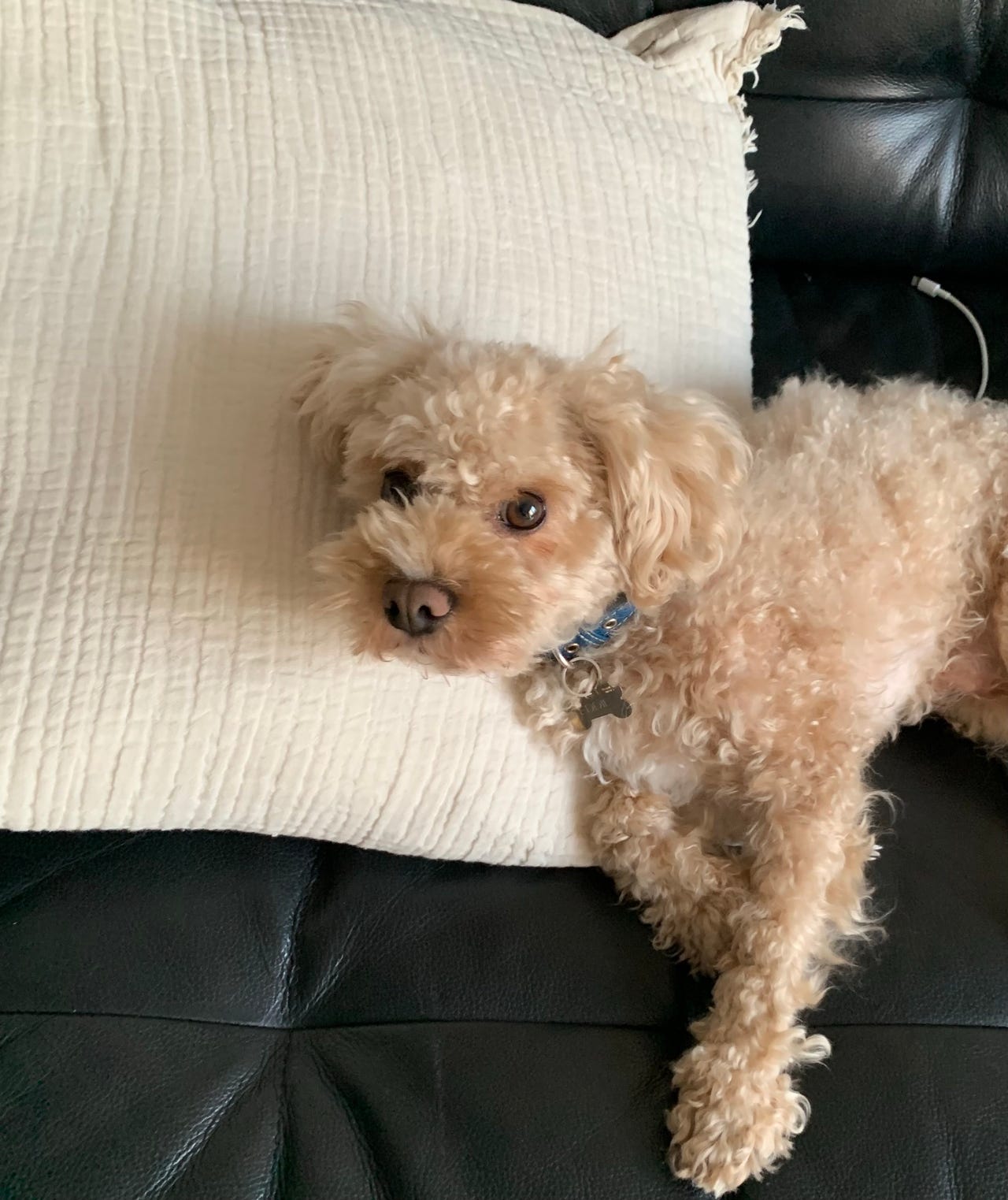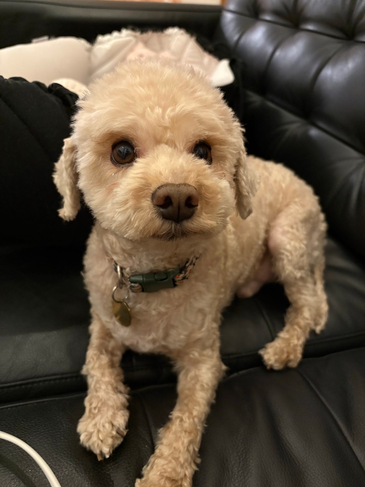 Eddie er en meget glad og legesyg lille dreng på 4 år. Han er halv puddel og halv bichon frisé og har noget dværg puddel i sig, og er derfor ikke en stor hund. Han bliver ikke større end han er nu og vejer omkring de 4 kg.