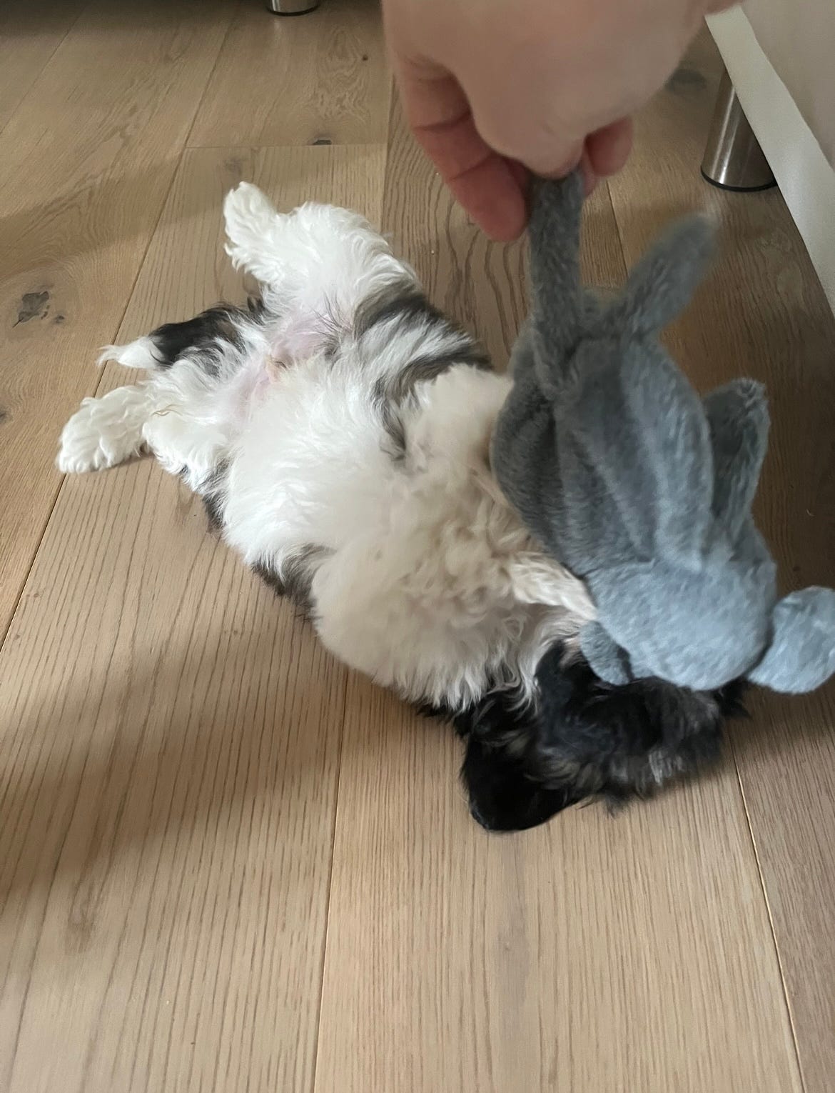 Hvalpen er totalt uimodståelig med det dejligste sind. Han elsker at lege op putte, er meget kærlig og lærenem.