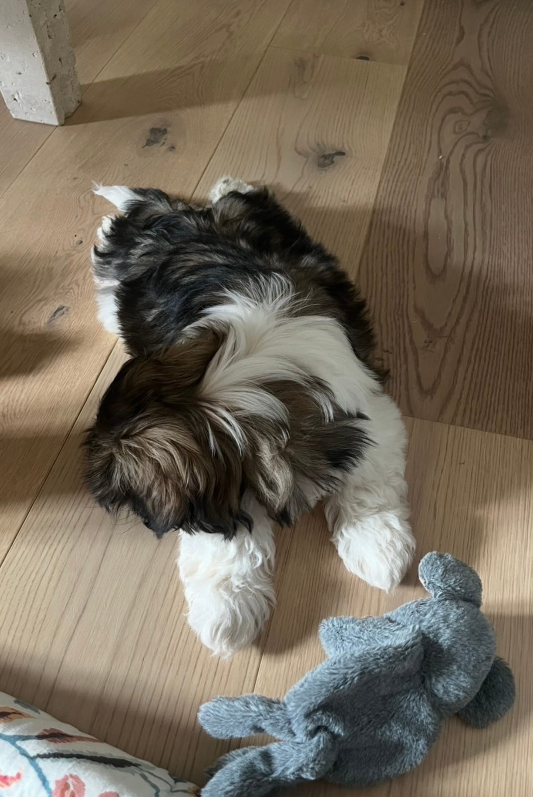 Hvalpen har det blødeste hår der ikke falder, og tåles fint selv af os med allergier.