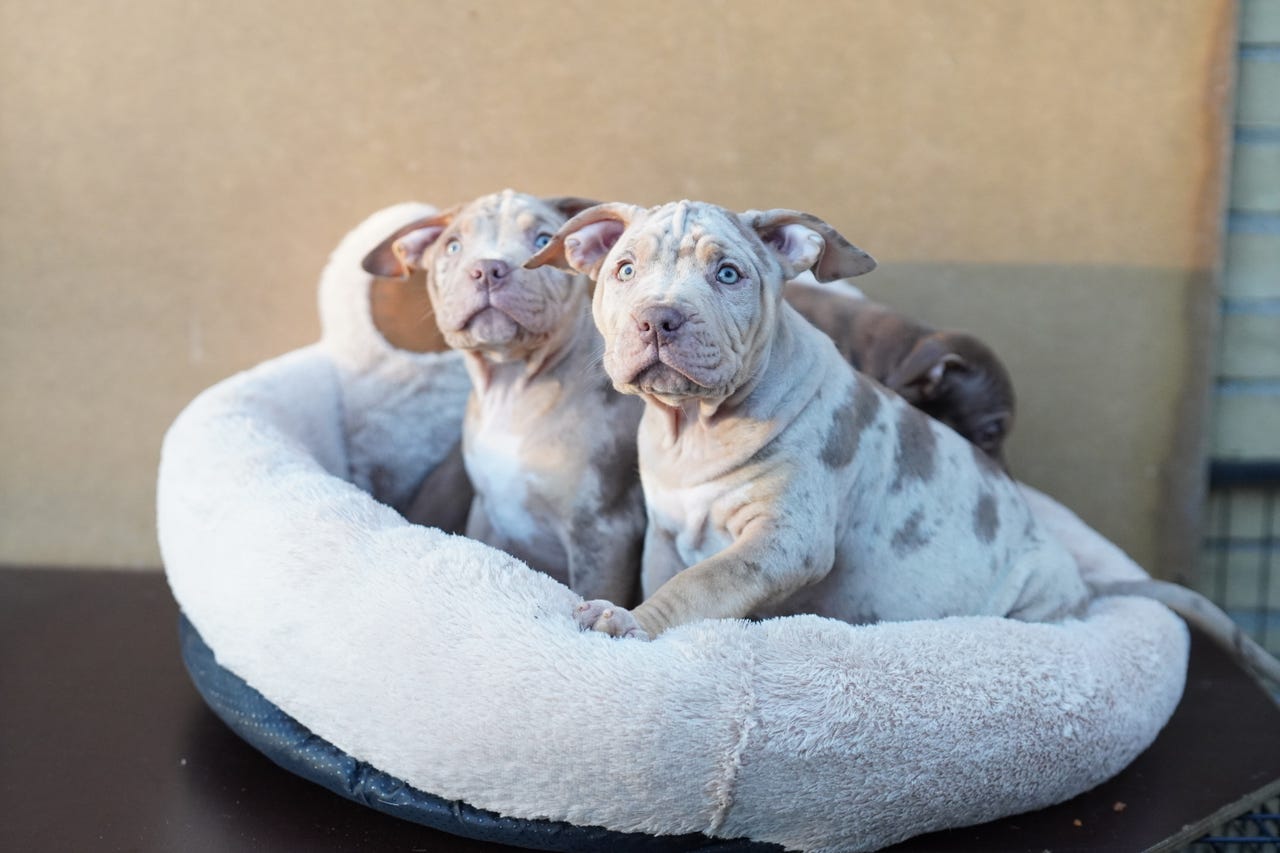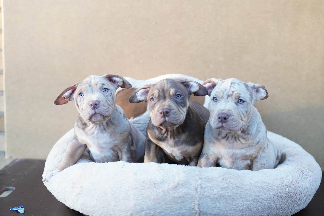 Vi har fået de skønneste American Bully hvalpe der vokser op i hjemmet med børn og andre hunde. De vil få træning i renlighed og tilvænning til forskellige stimulis samt daglige indtryk. De får køreture i bilen samt besøg hos dyrlægen og maxi zoo for god tidlig socialisering. Inden de flytter får de vaccination, ormekur, chipning, dyrlæge-tjekup samt registrering i hunderegister.